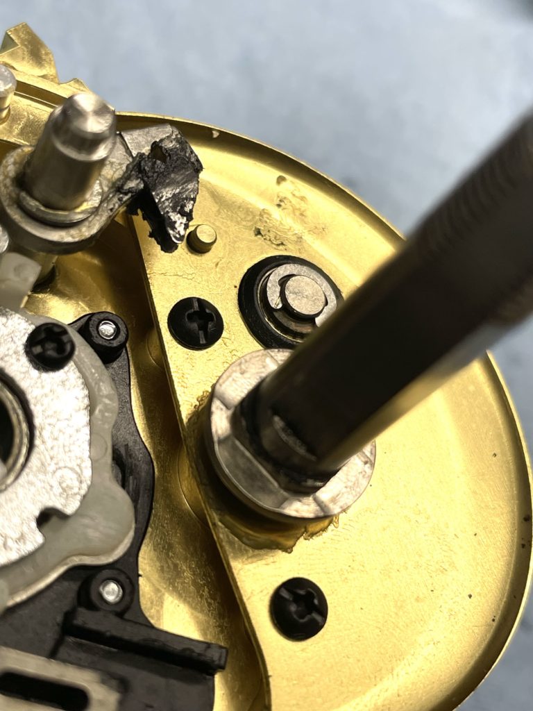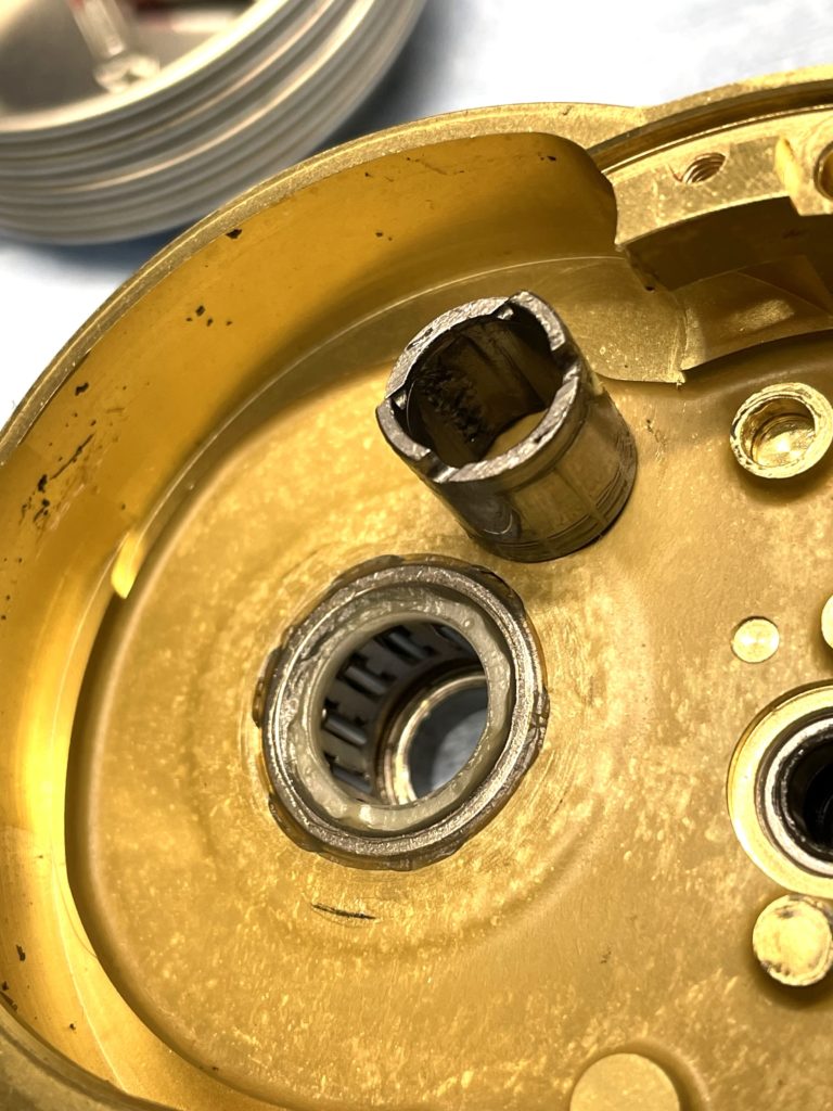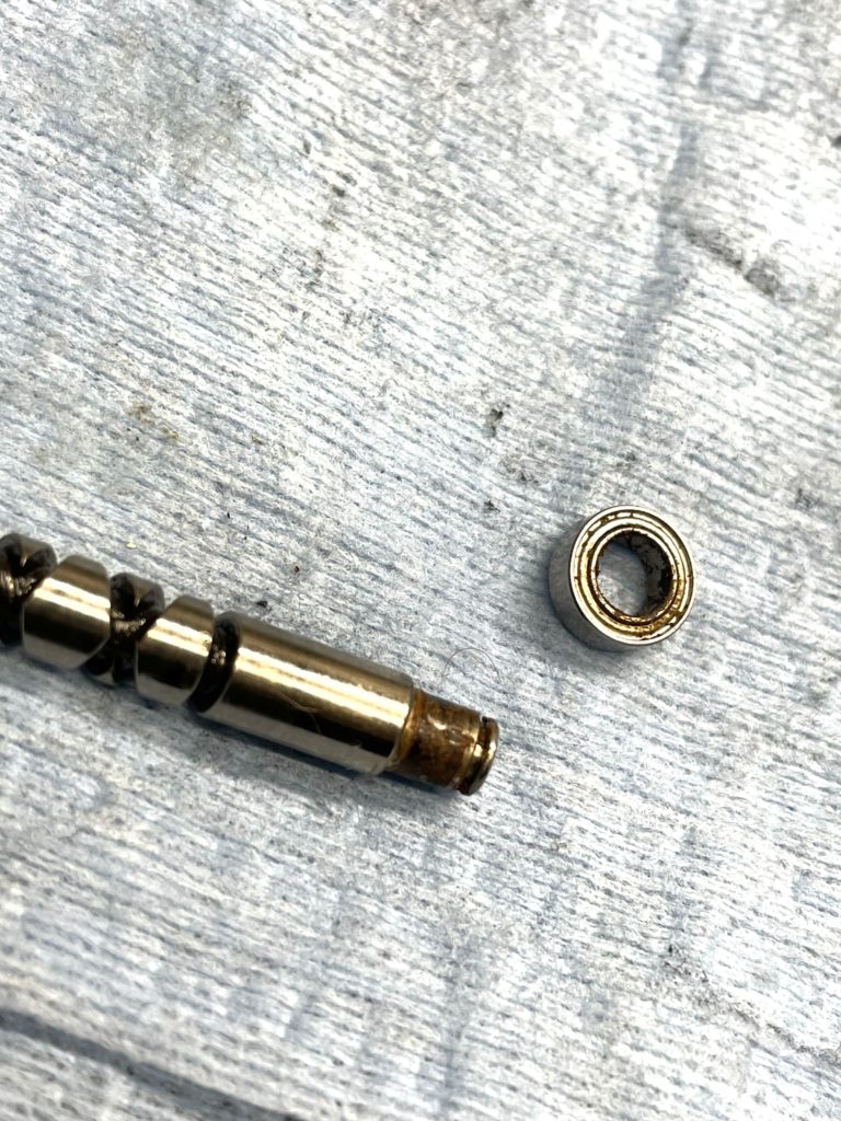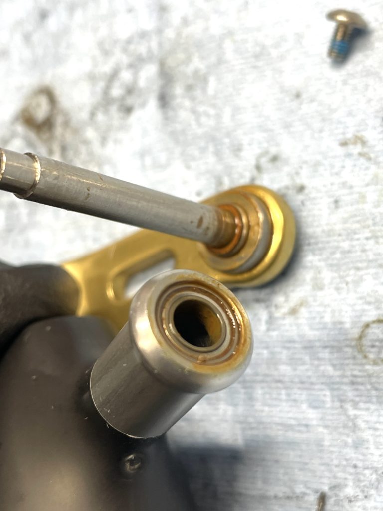 このままでは新しいベアリング入らないので、あとで研磨処理します。