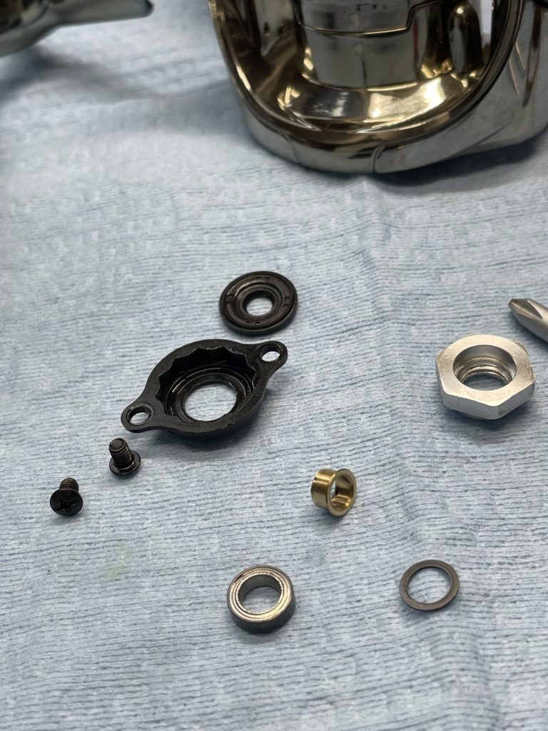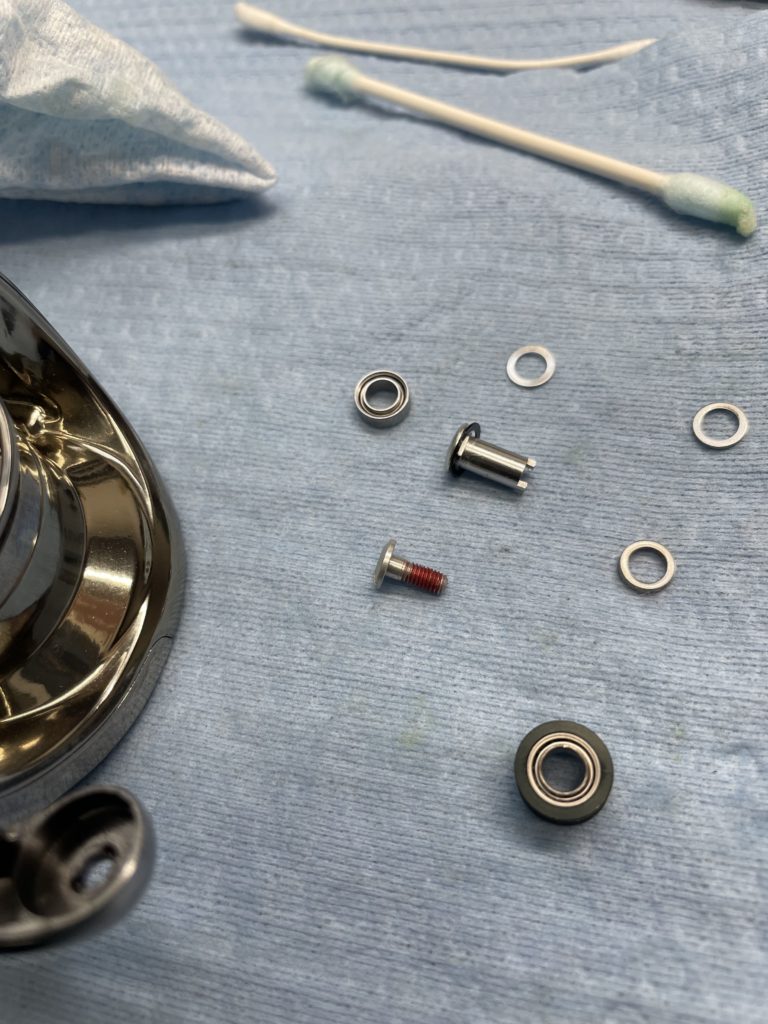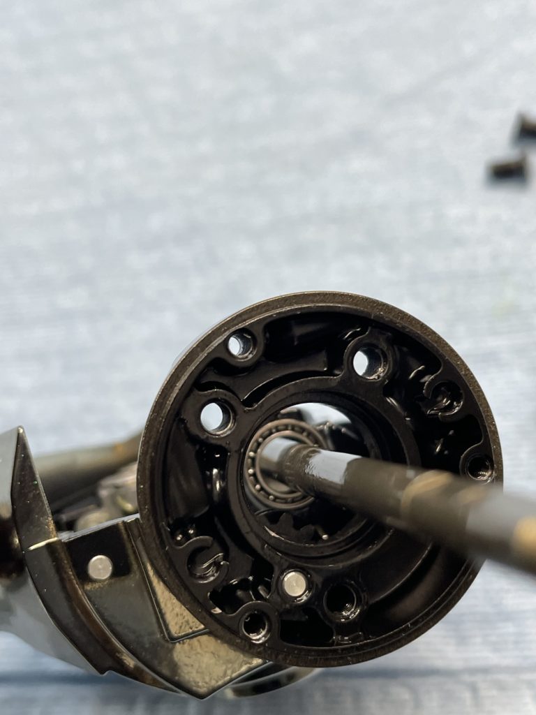 前オーナーが軽くしたかったのかなぁと感じ取れるベアリングタイプ