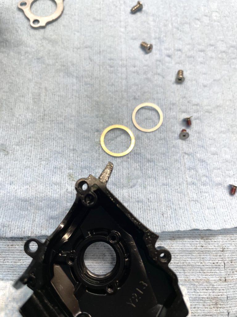 ここの座金はシビアなので入れたいところ、予定外の予算発生ですが純正の真鍮カラーに戻します。