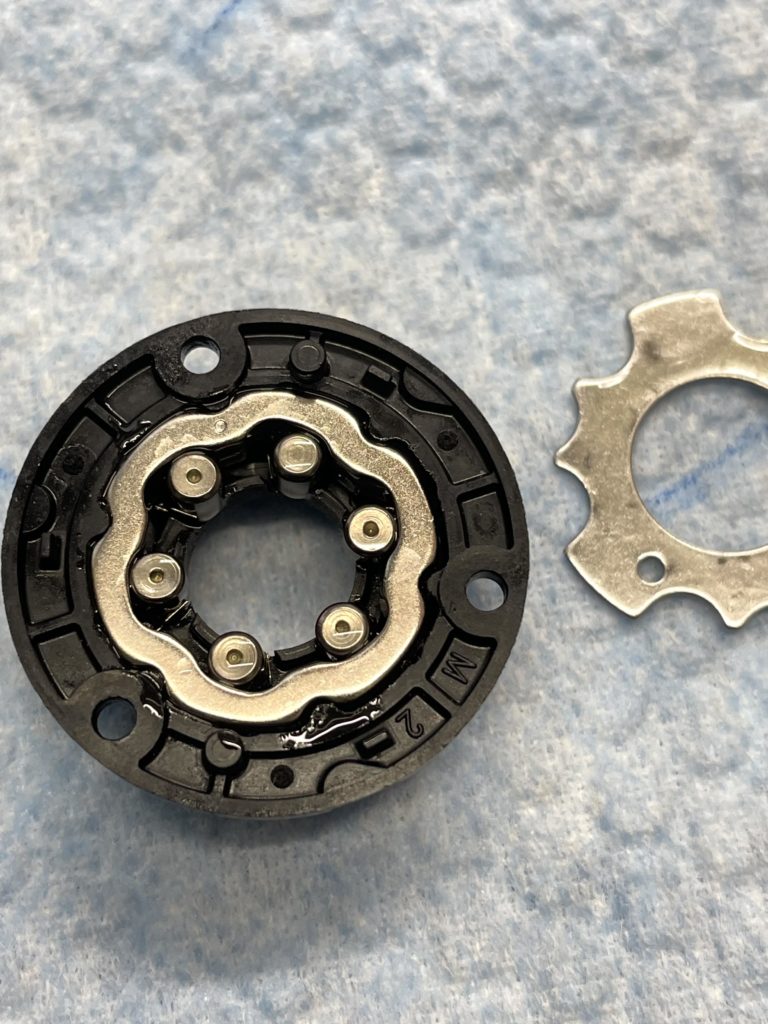 22ステラのパーツを入れ込んでありますが、肝心の座金がローターナットに合っておらず、座金無しで組まれておりました。