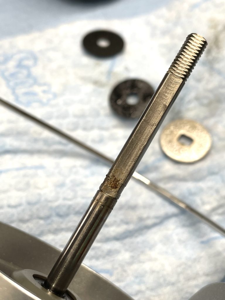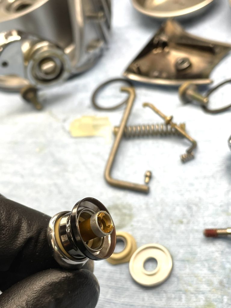 スプール受け部は、強烈な錆で座金が外れませんでした。