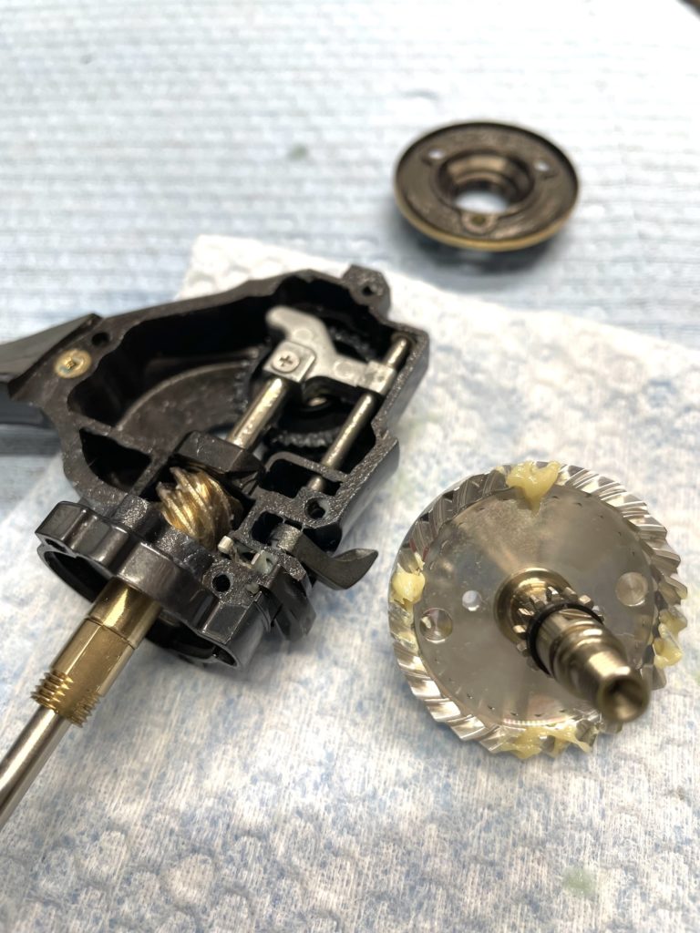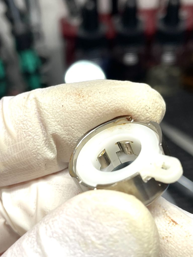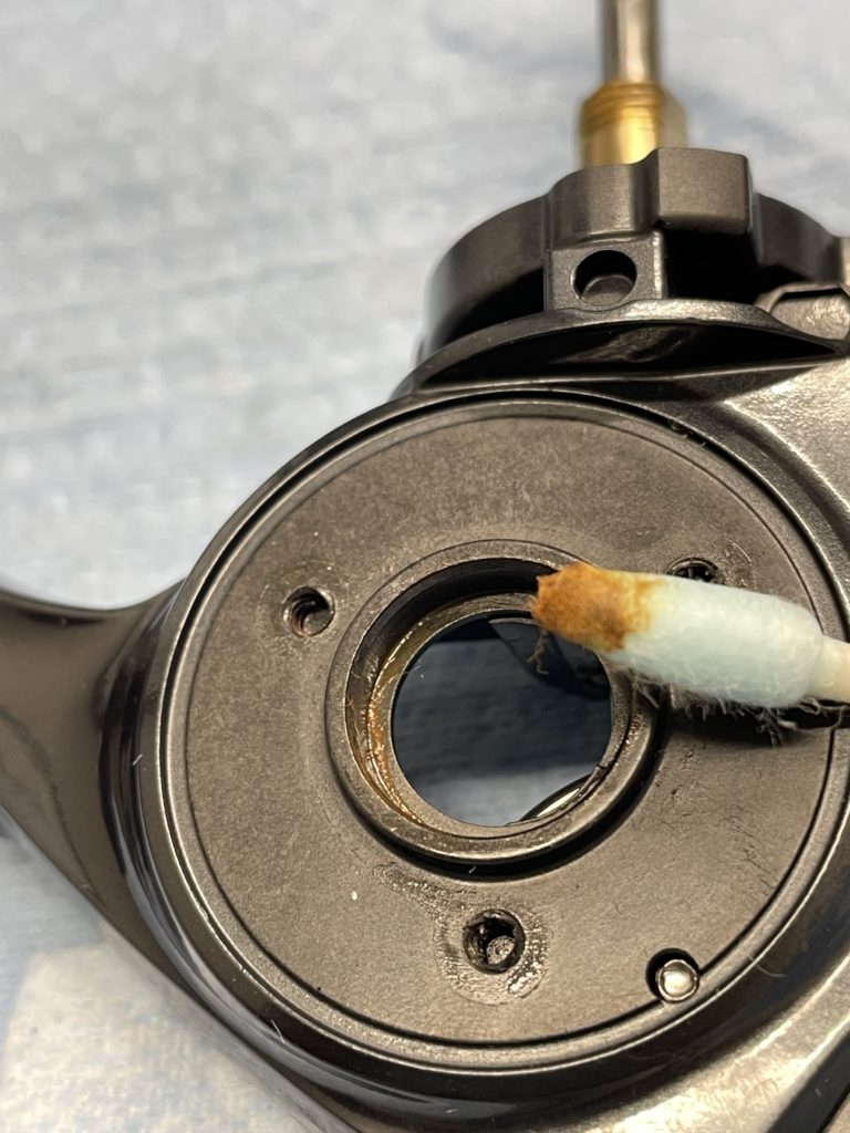マグオイルが、ワンウェイクラッチ位置に落ちてしまっているのがインナーに付着しているオイル位置で判断できます。