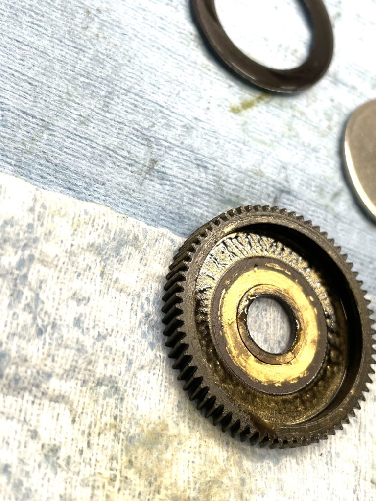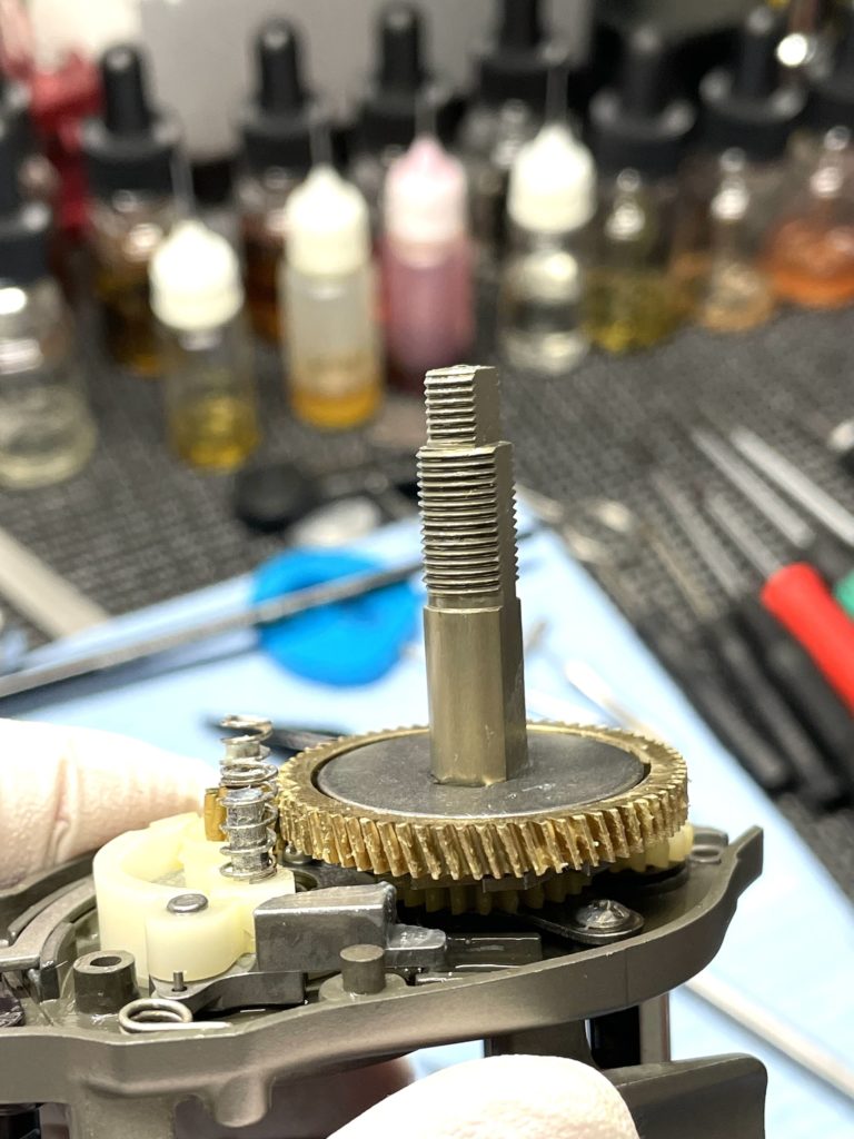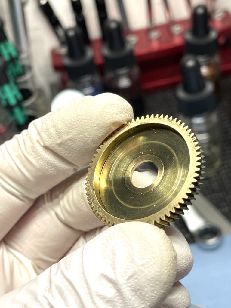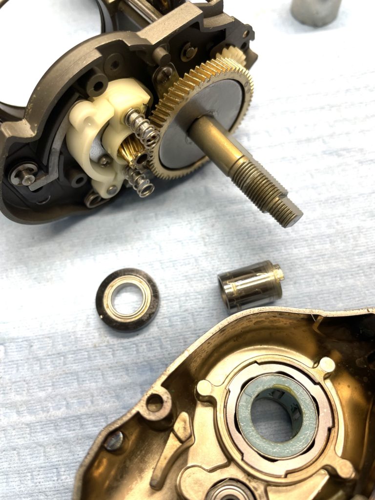 この個体だけカスタムベアリングやメカニカル内部のベアリング押さえがキチンとハマってなかったり、部品欠損もありで分解個体と判断できました。