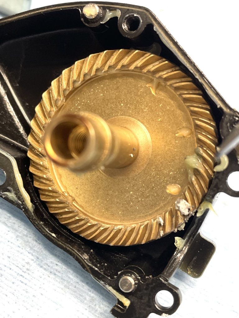 反動で右側が割れたのか、、、謎ですがクラッチ動作に問題ないので再使用しました。