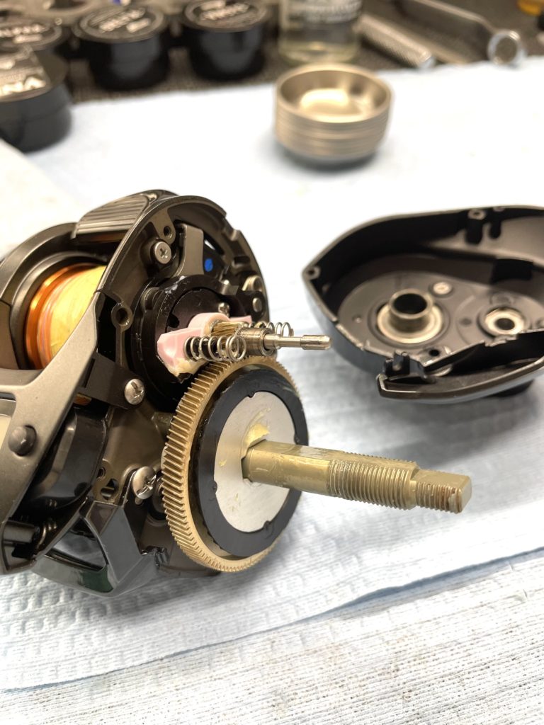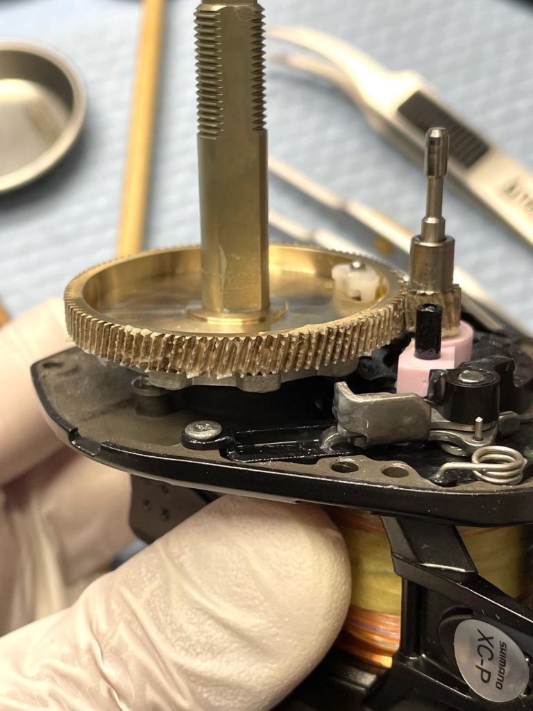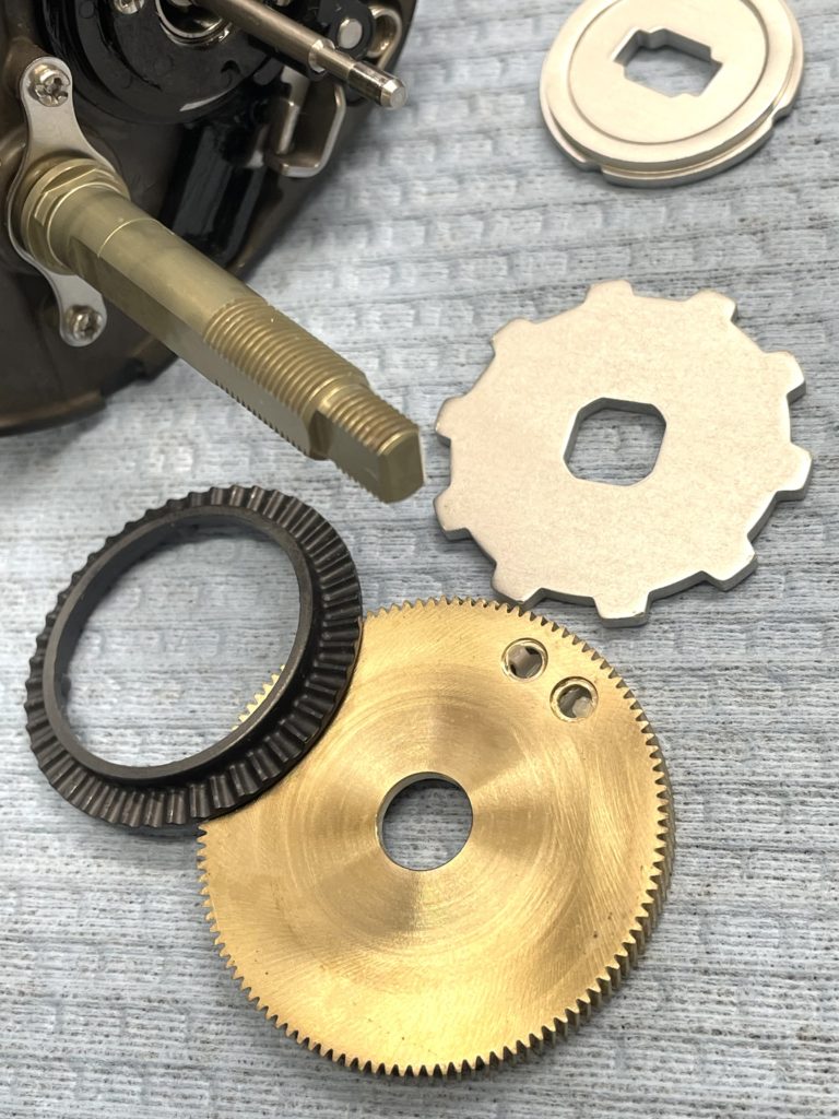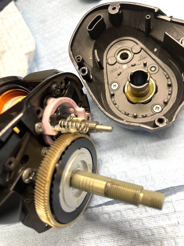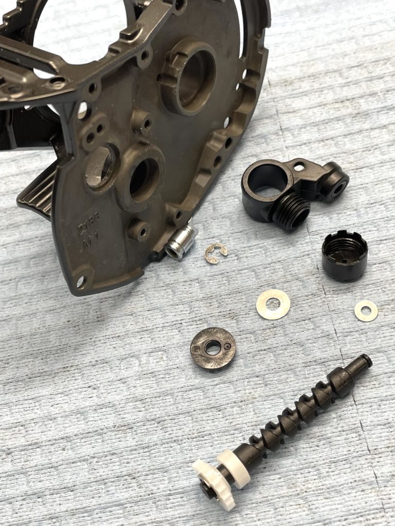 これってすぐに劣化するので有名なウオームシャフト素材ですが、組み上げ直後少しカチカチ音症状出ました。