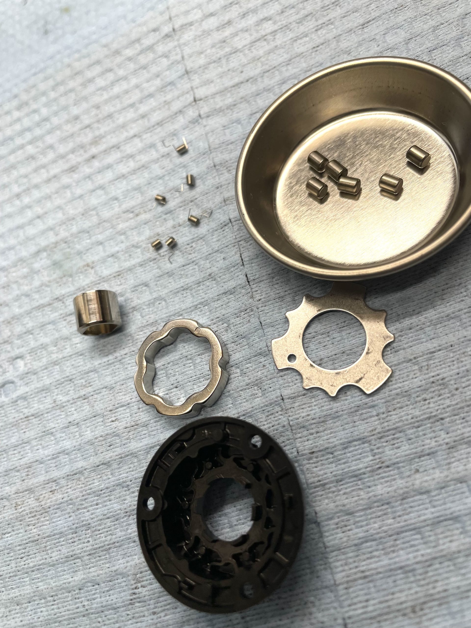 使用感も少なく問題ないのですが、主要ベアリング4つをレーシング仕様に変えるので交換