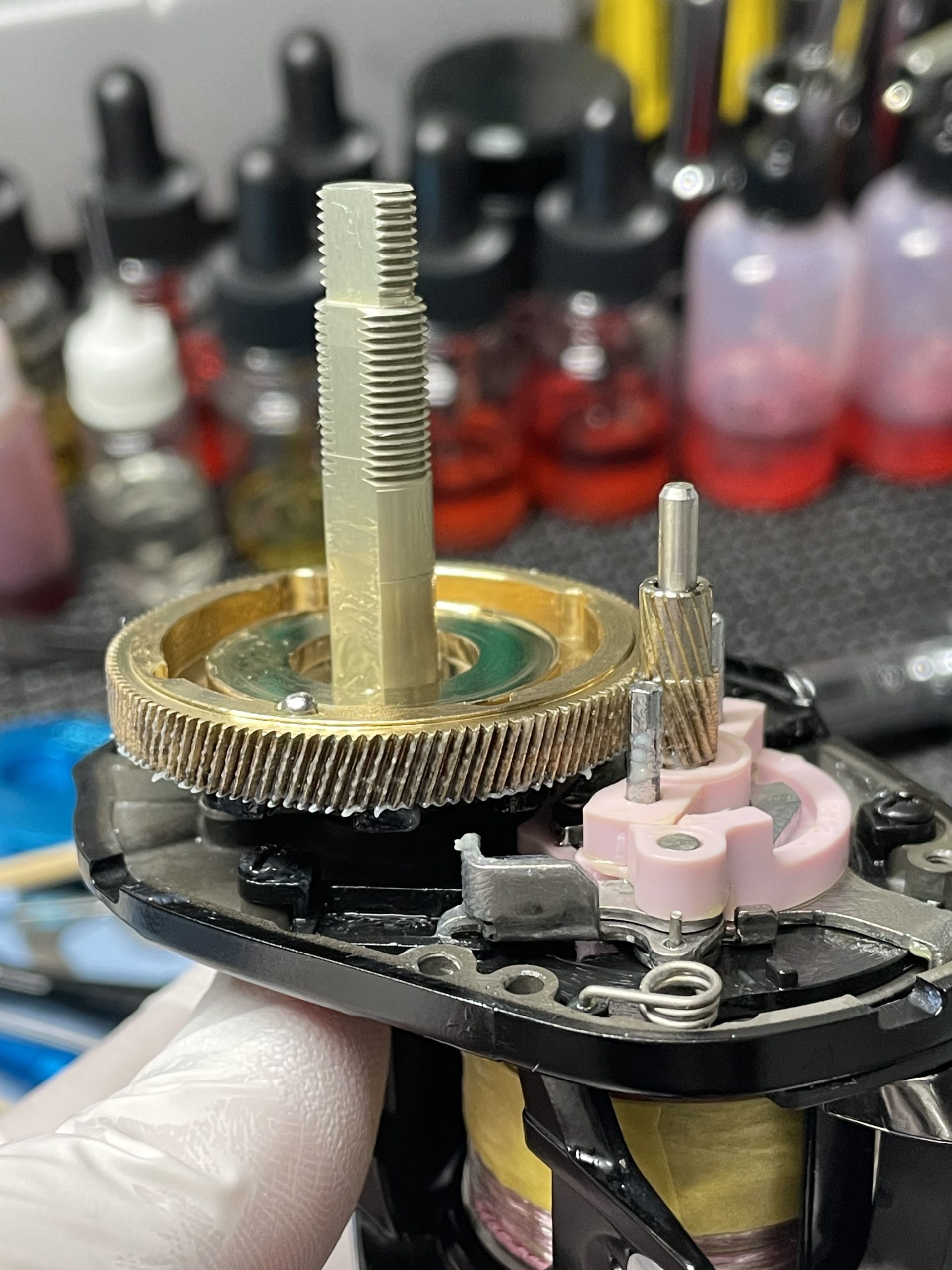 洗浄を終えて前回ギア交換してもザラツキや違和感が残った151HGを煮詰めます。