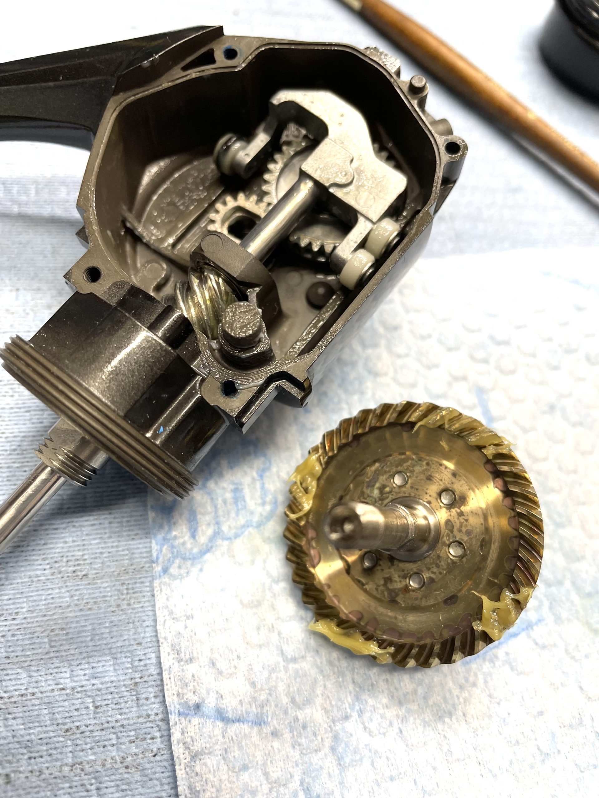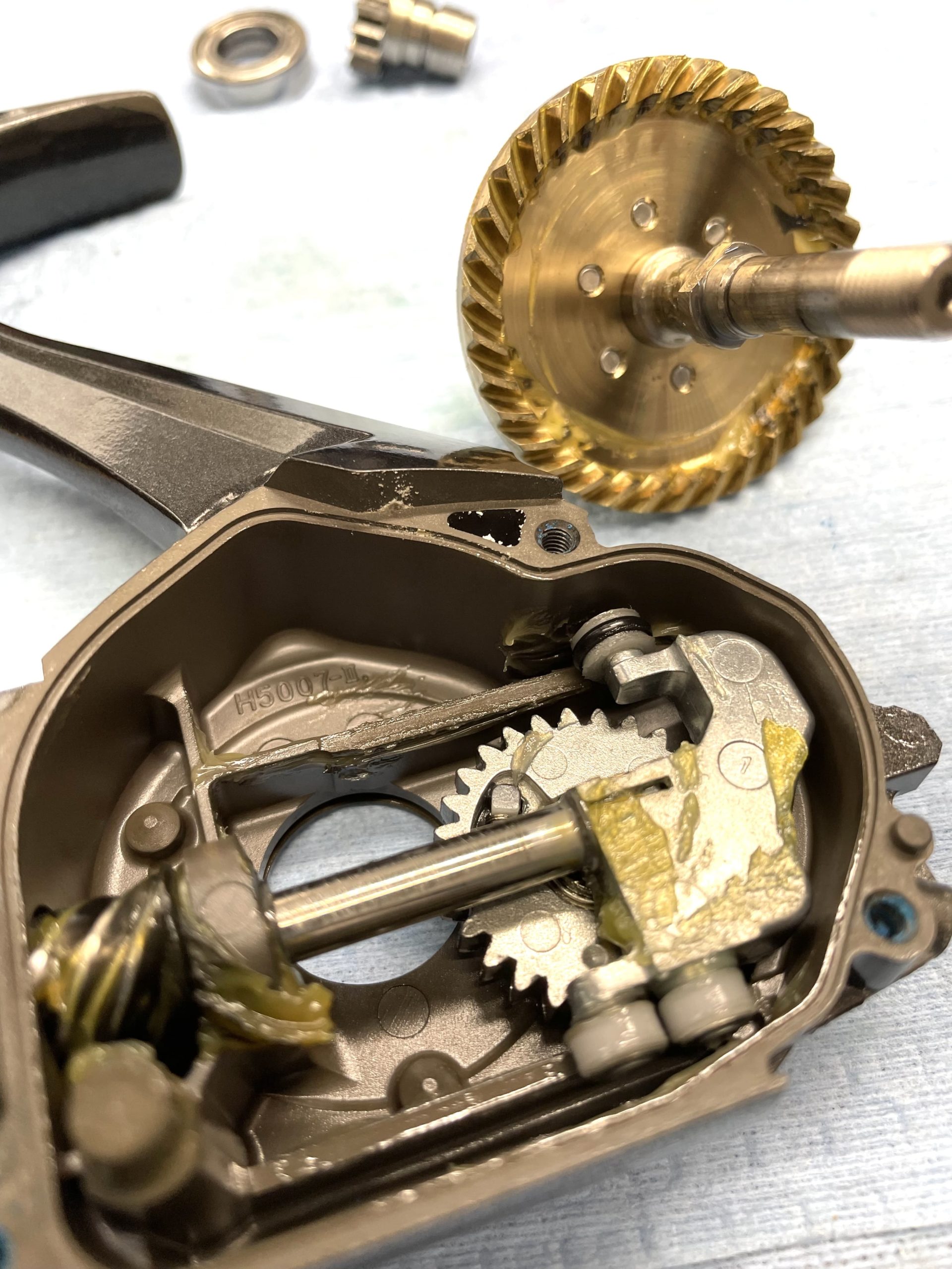 組み上げるとゴリ原因は、ベアリングの要因も大きく回転中のゴリ感は作業後減りました。