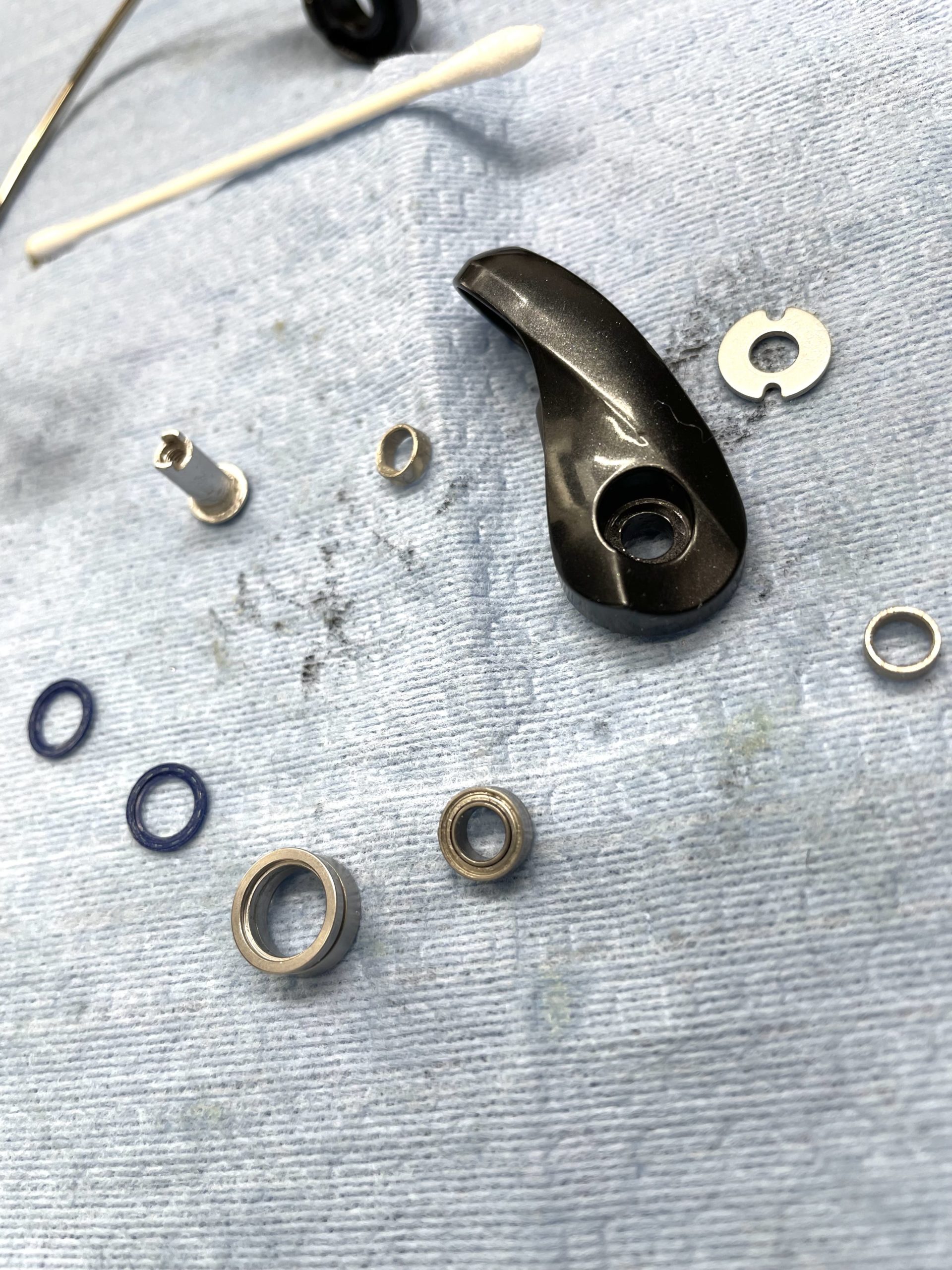 ラインローラーも少し異音を感じるので、一体式をバラシてベアリング変えます。