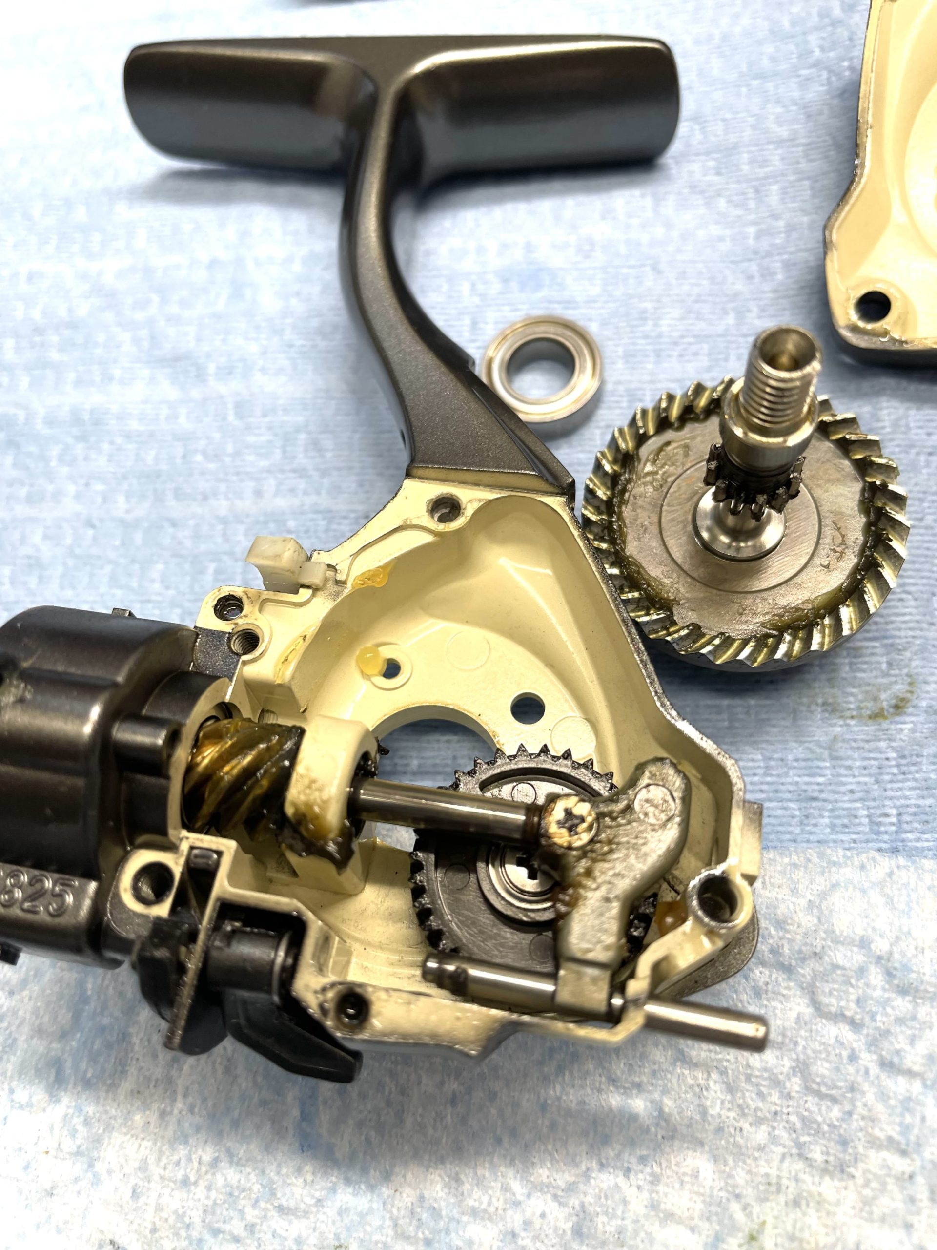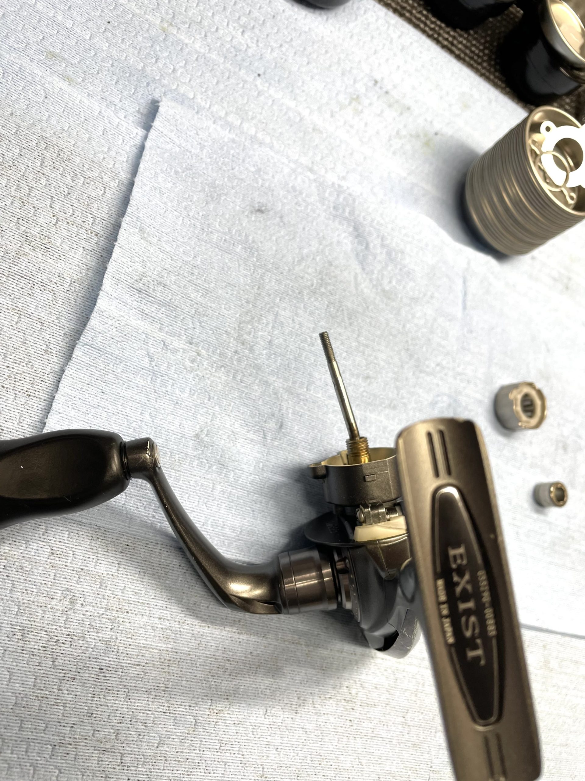 まずは巻き心地悪くギア交換プランな06イグジスト スティーズカスタムをオーバーホール開始🪛