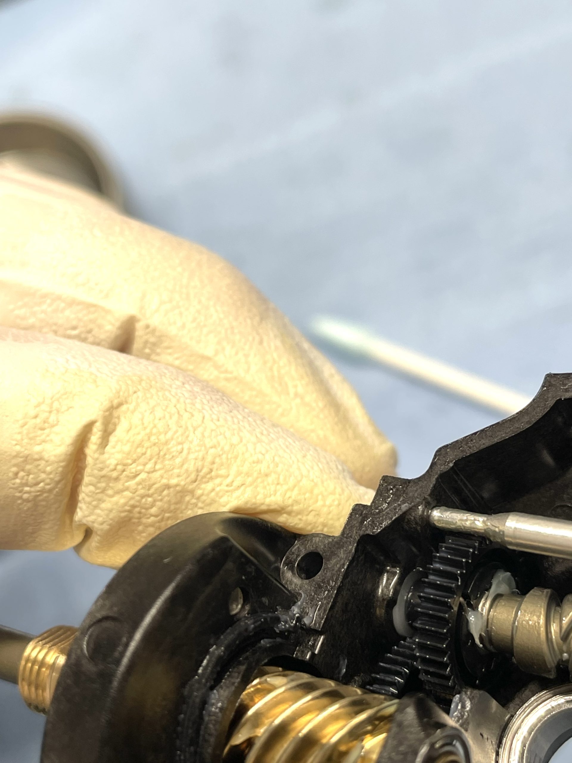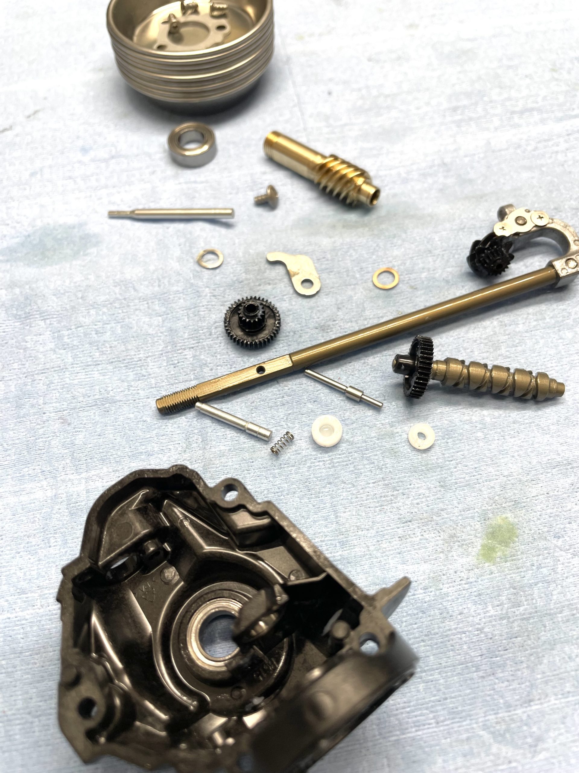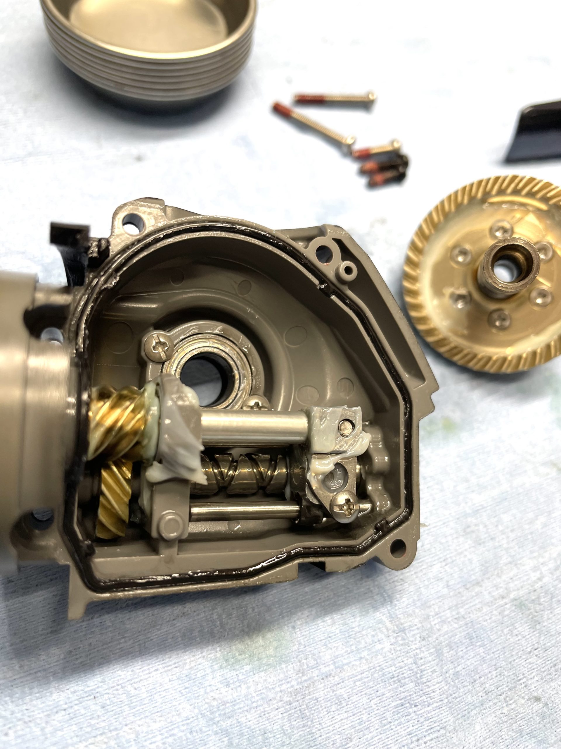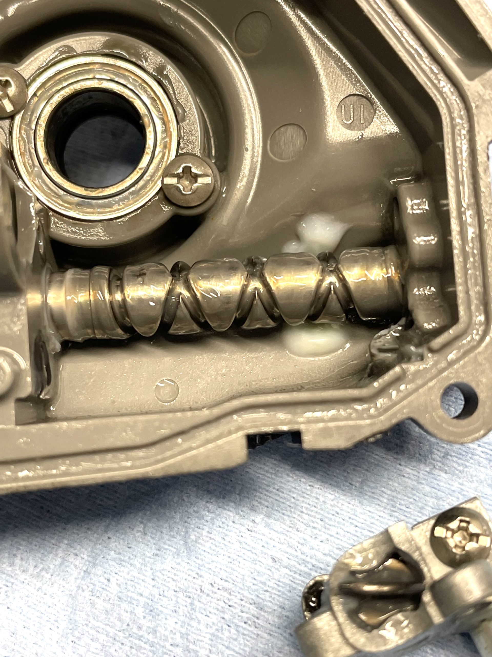 根拠としては、①ネジロック剤の効き方 ②フリクションリングのグリス残存具合 ③ウォームシャフト抑え板の防水純正グリス塗りの感じです。