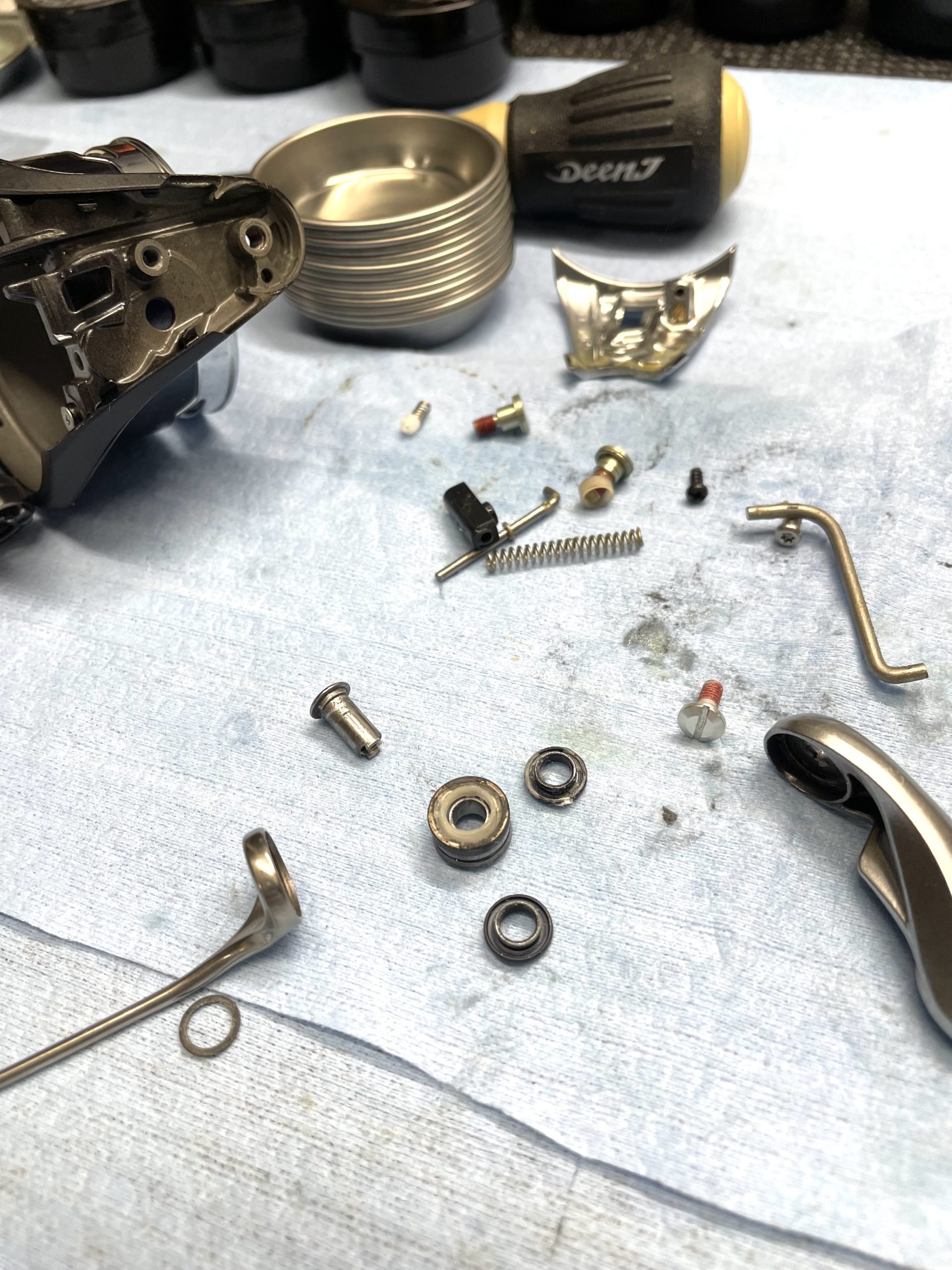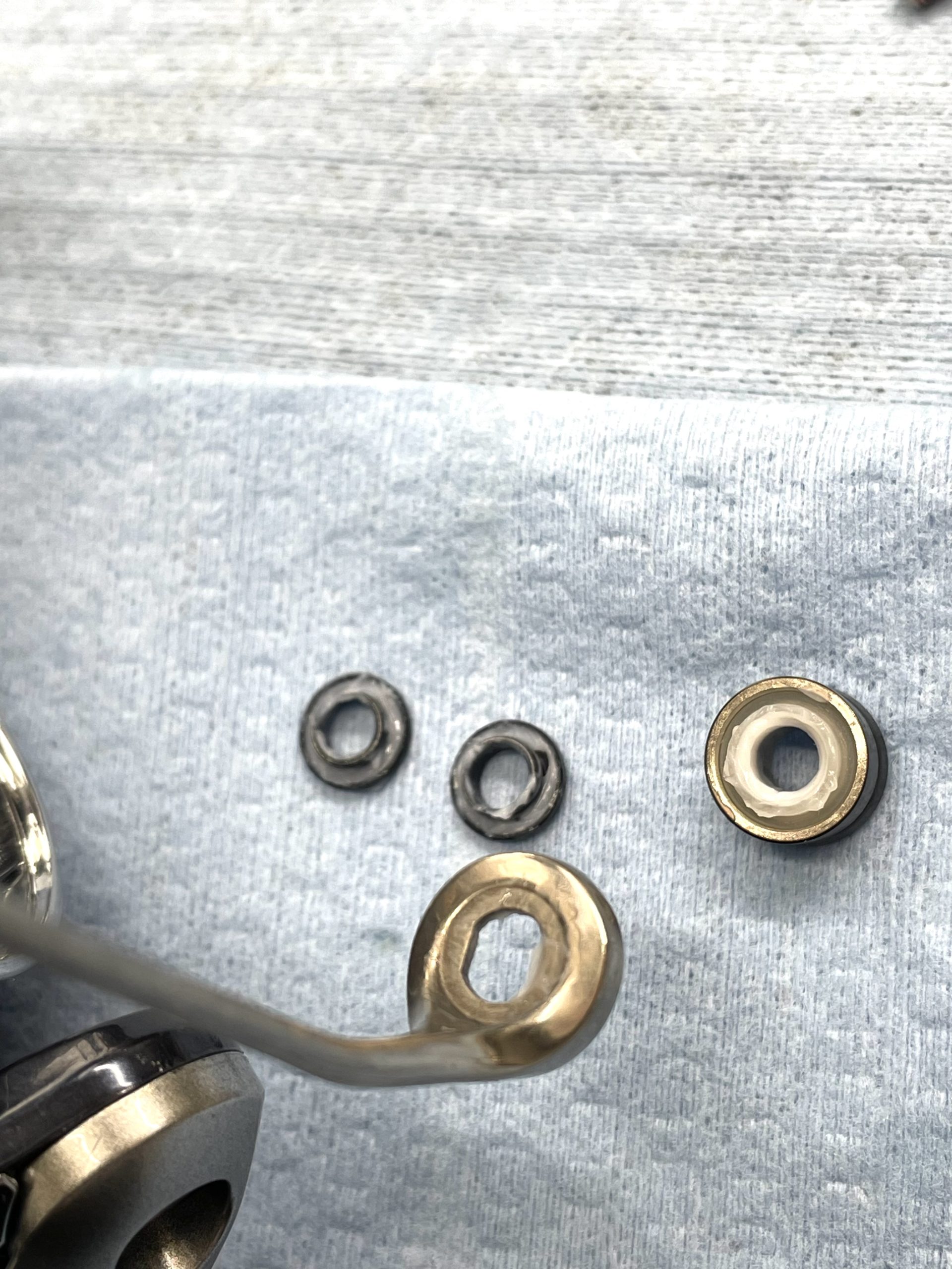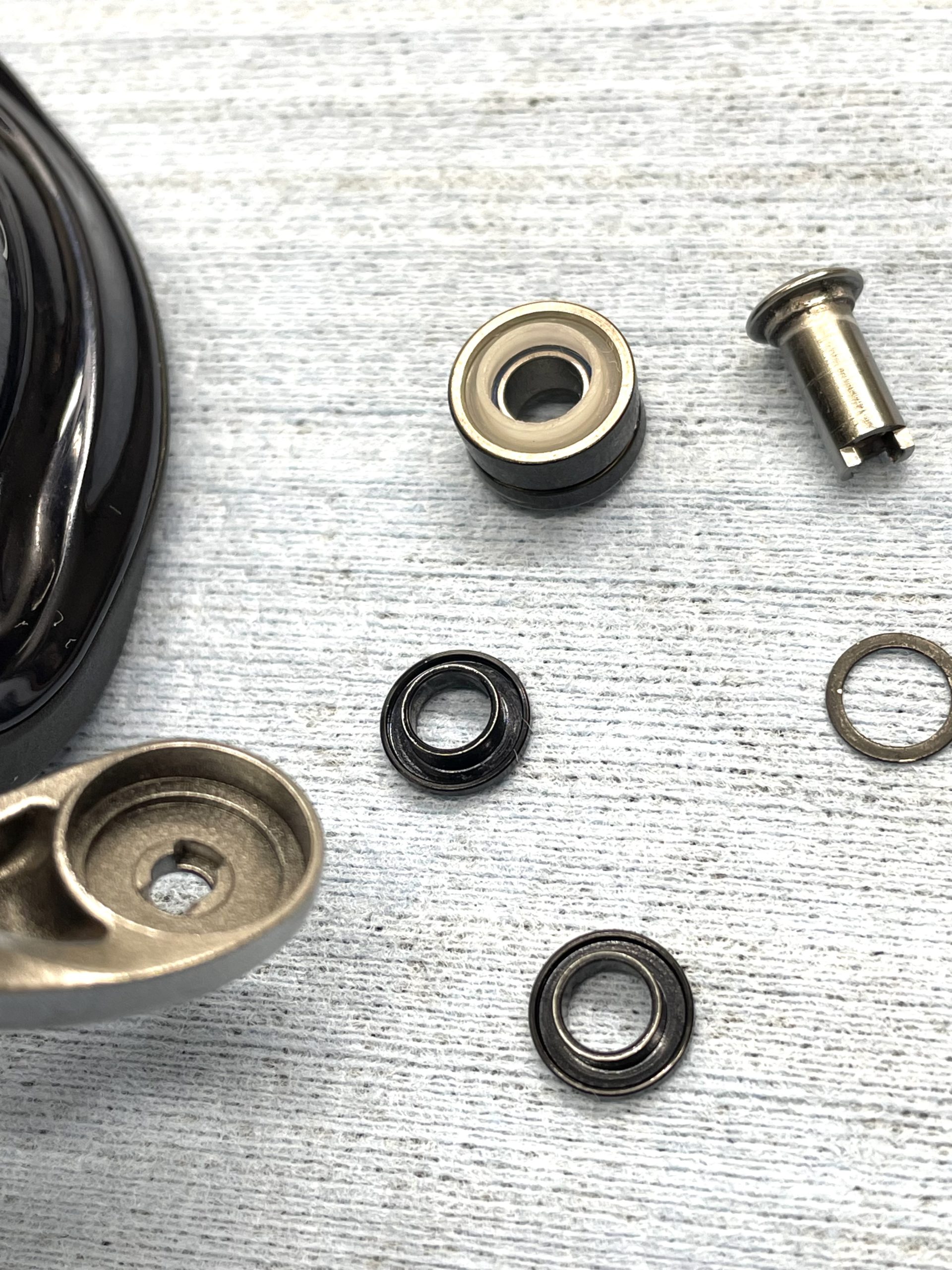 当初はフルベアリング化しようと思ったのですが、それよりも半年以内で外部にシャリ感が出てしまうコンディションの5つのベアリング交換の方に費用をかけてもらおうと決断。