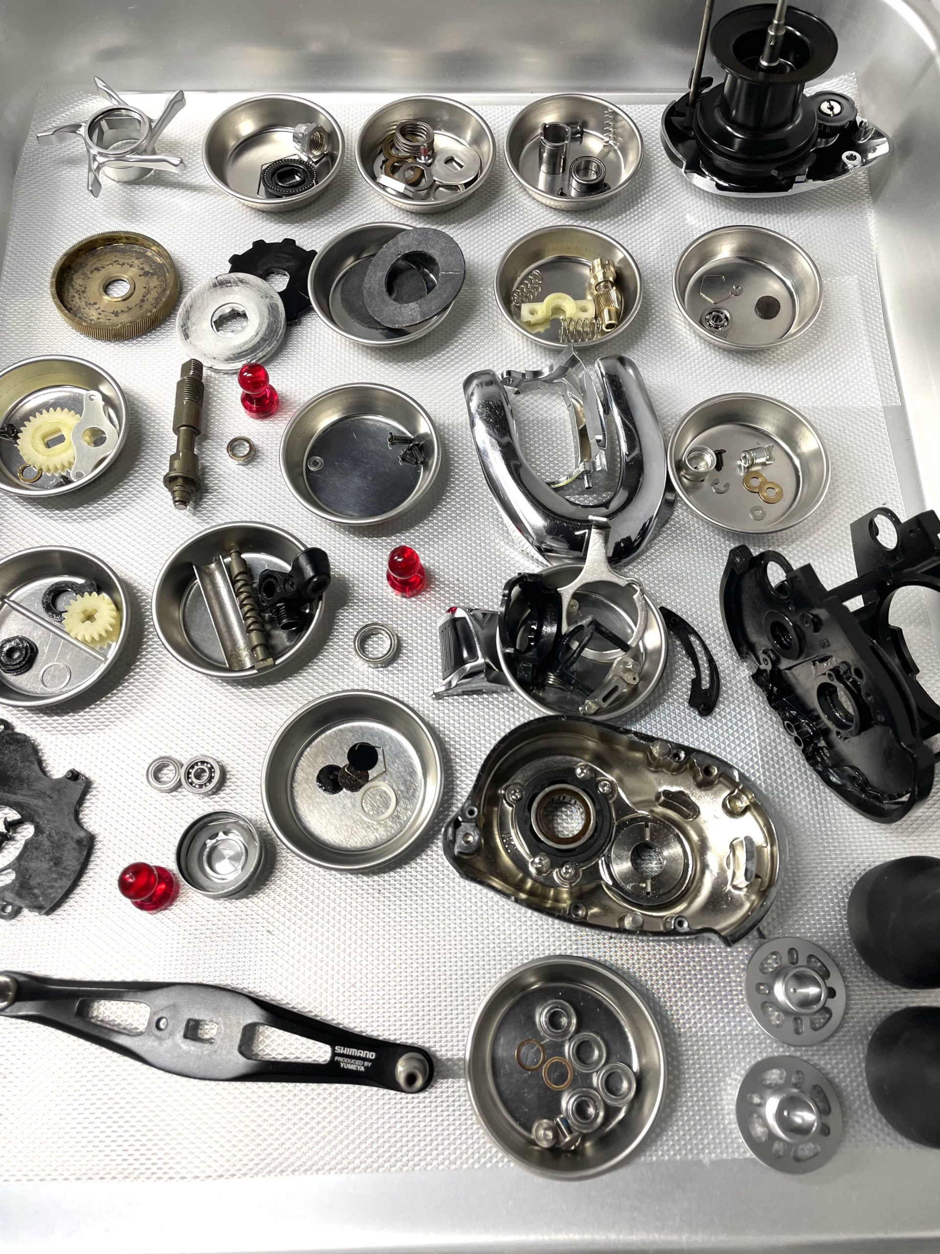夢屋ウルトラストロングハンドルのガタつき、リトリーブ時のザラつきでお持ち込み頂きました。
