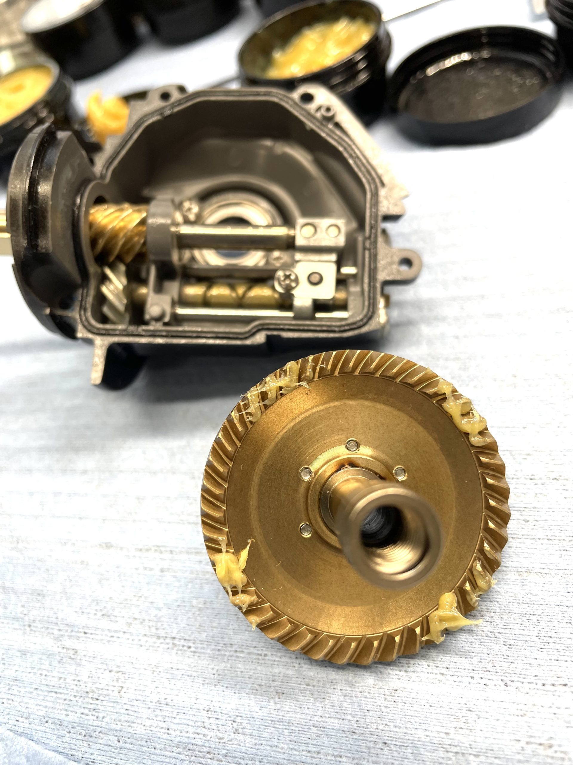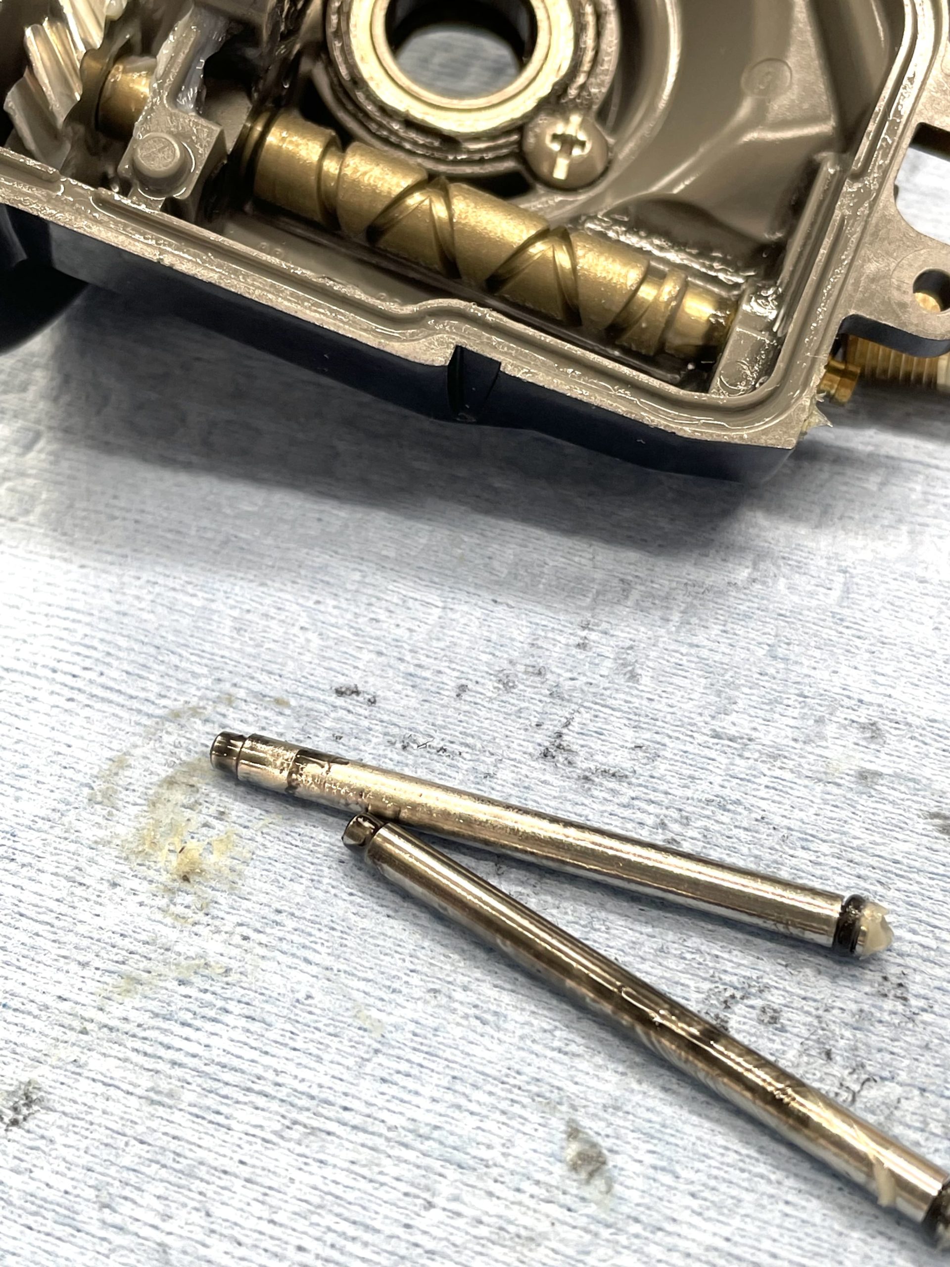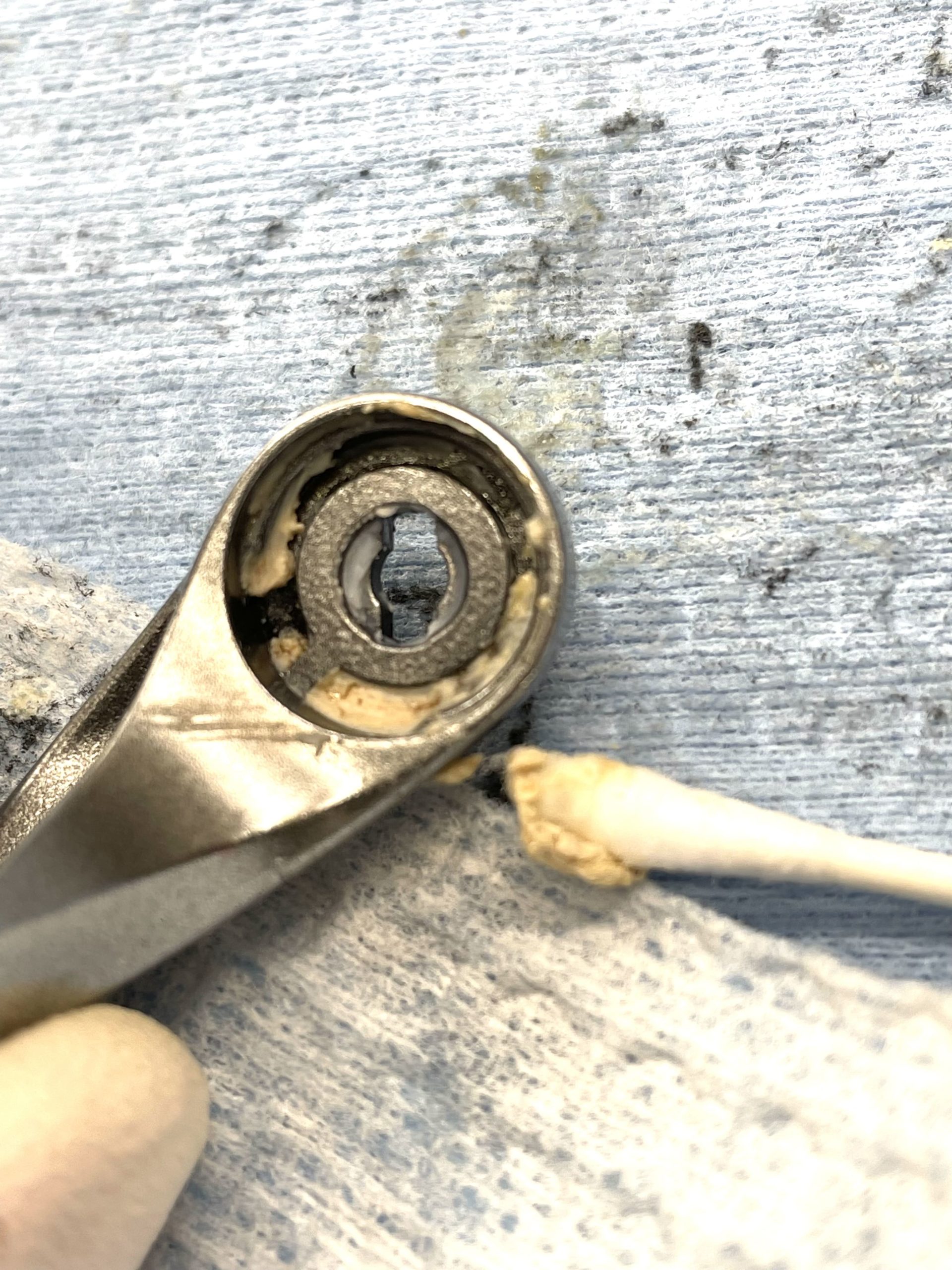 シマノ特殊撥水グリスも優秀ですが、経年劣化するとこんな状態になります。
